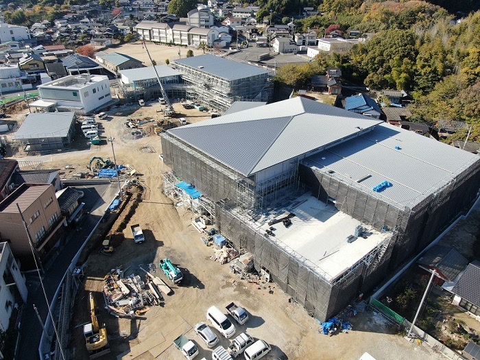 街開発 公民館&体育館&コミュニティー館&福祉マンション&コンビニ&銀行躯体工事進行中